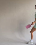 Made from our signature performance fabric with contrast pink and lavender seams, this piece nods to the colour stories you already love across Earthletica’s favourite crops. Lightweight, sculpting and designed to move with you, this is your go-to layer for warm-ups, rallies and everything after.